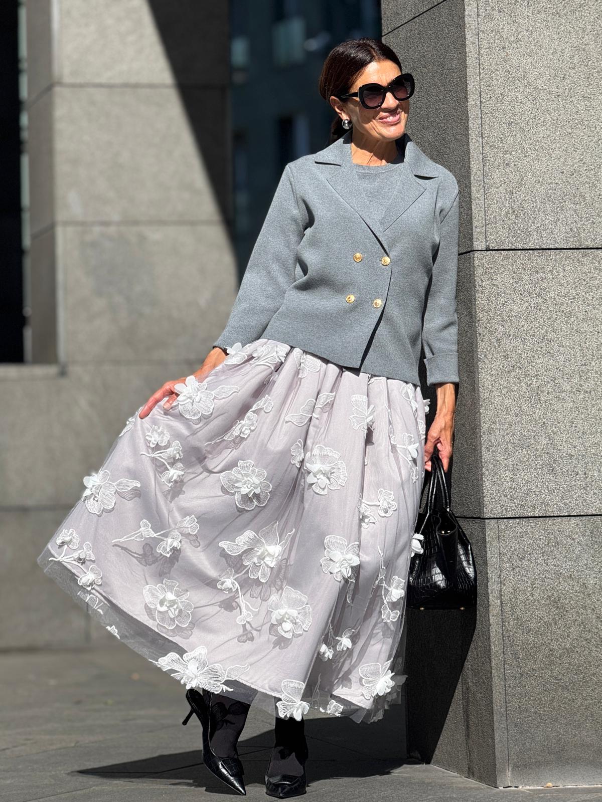 Wir präsentieren Ihnen den Strickcardigan Kaschmir Joelle Grey von Marielle Stokkelaar, ein luxuriöses Kleidungsstück, das jedem Outfit Eleganz verleiht. Dieser elegante Cardigan zeichnet sich durch ein zeitloses Design und makellose Verarbeitung aus. Werten Sie Ihre Garderobe mit diesem exklusiven und kunstvollen Kleidungsstück auf. Die Länge des Cardigans Joelle beträgt 60 cm.
