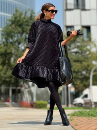 The Dress Sarah Black Velvet features quilted fabric, bringing a classic and stylish look to any wardrobe. The quilted fabric is designed to be comfortable and stylish in any setting. With this dress, you'll be guaranteed to turn heads. The length is 90 cm/ 2.95 ft