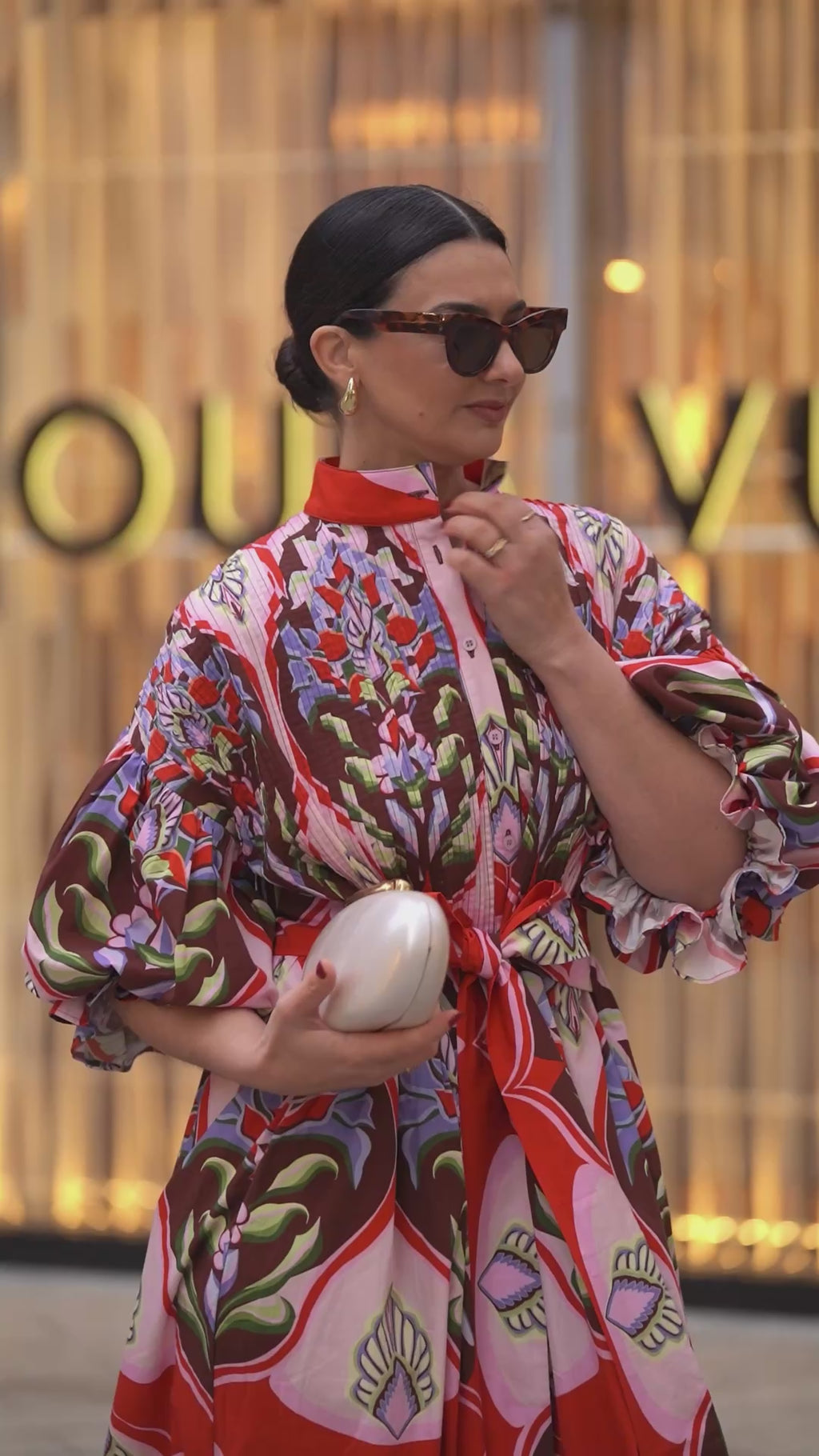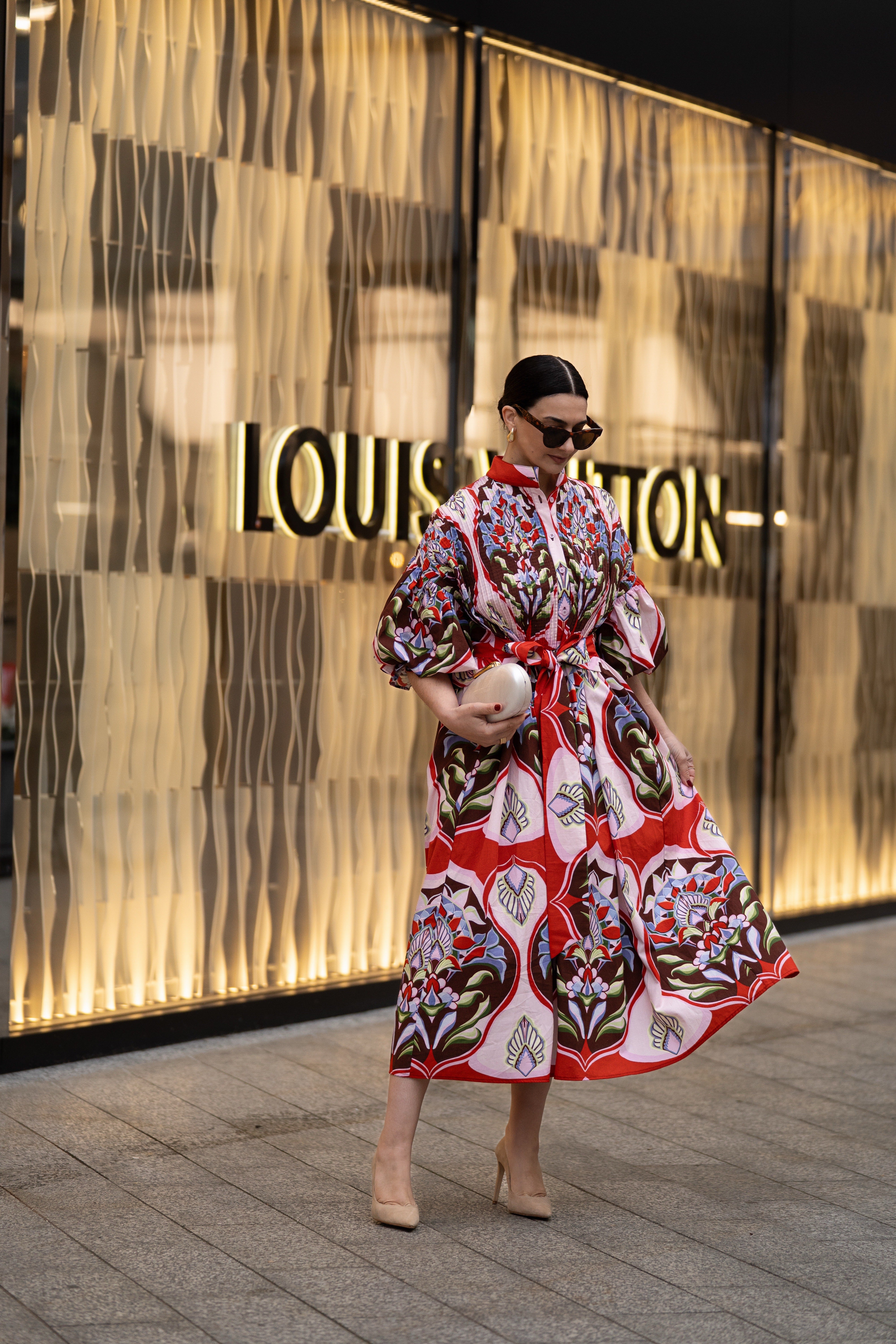 Introducing the Dress Phoebe Print Red, a striking piece that transforms everyday elegance into wearable art. Featuring a bold geometric print in rich red tones, this dress merges contemporary design with timeless sophistication. The artistic Phoebe pattern elevates any occasion, offering versatility without compromise. A fresh addition to your wardrobe that speaks volumes. The fabric belt is attached to the dress. Dress Phoebe Print Red has side pockets. The length of Dress Phoebe is 130 cm / 51 inch.